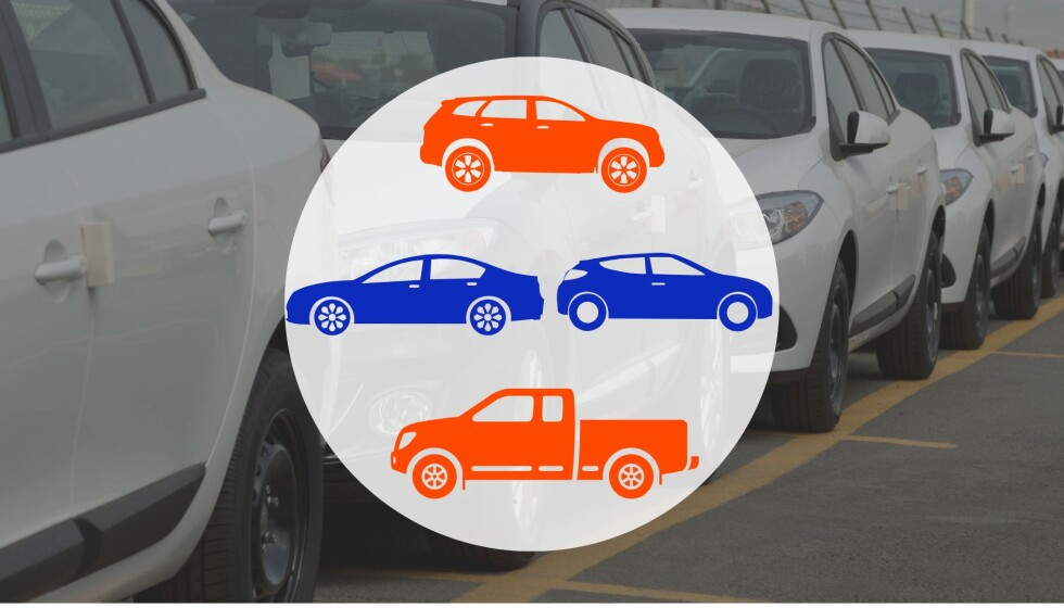 The least popular are coupes (0.9%), convertibles (0.2%) and pickup trucks (0.18%).