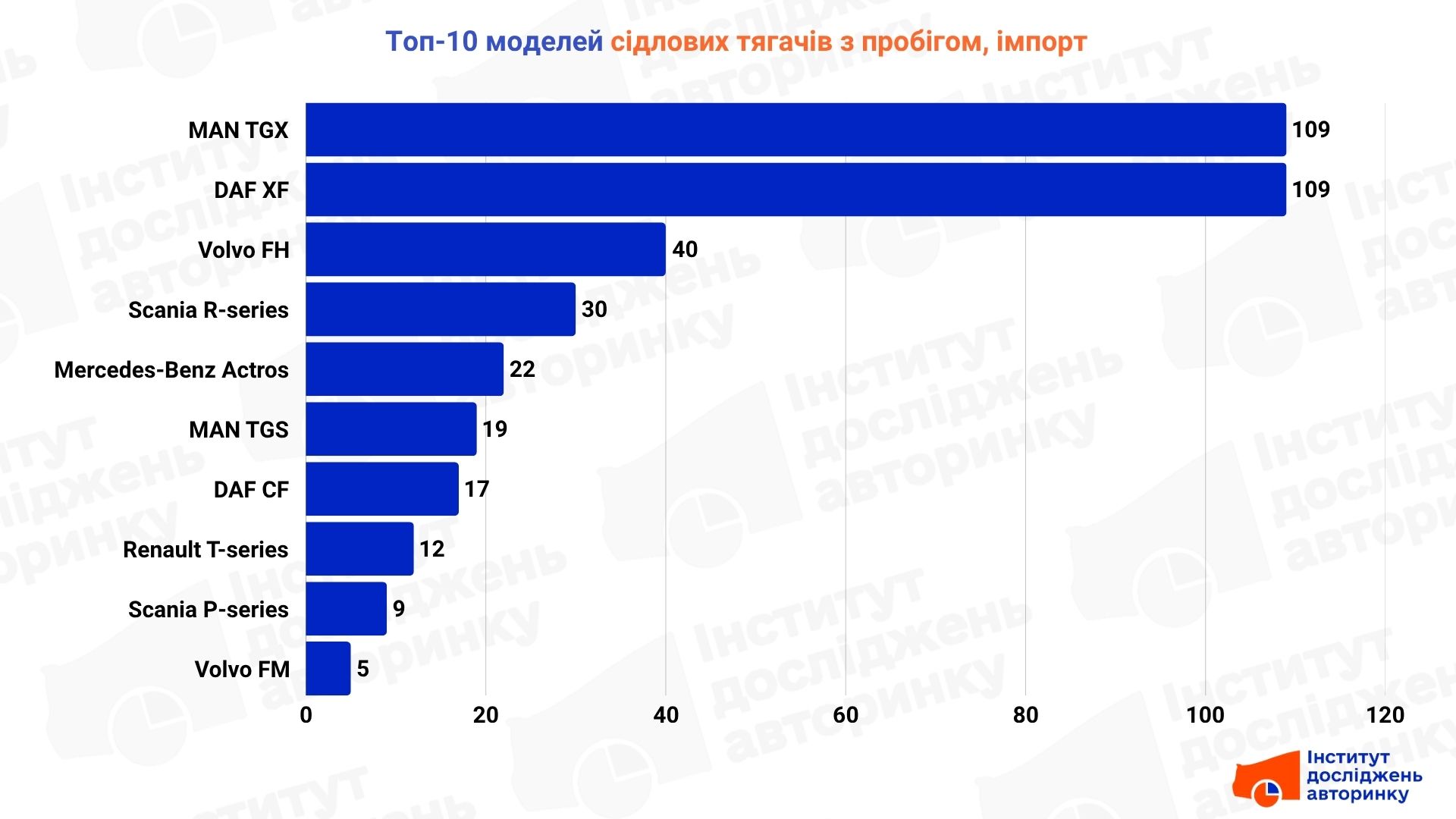 Experts from the Institute of Auto Market Research analyzed vehicle registration statistics in Ukraine and identified the most popular models in three segments of tractor units: imported used, domestic resale, and new.