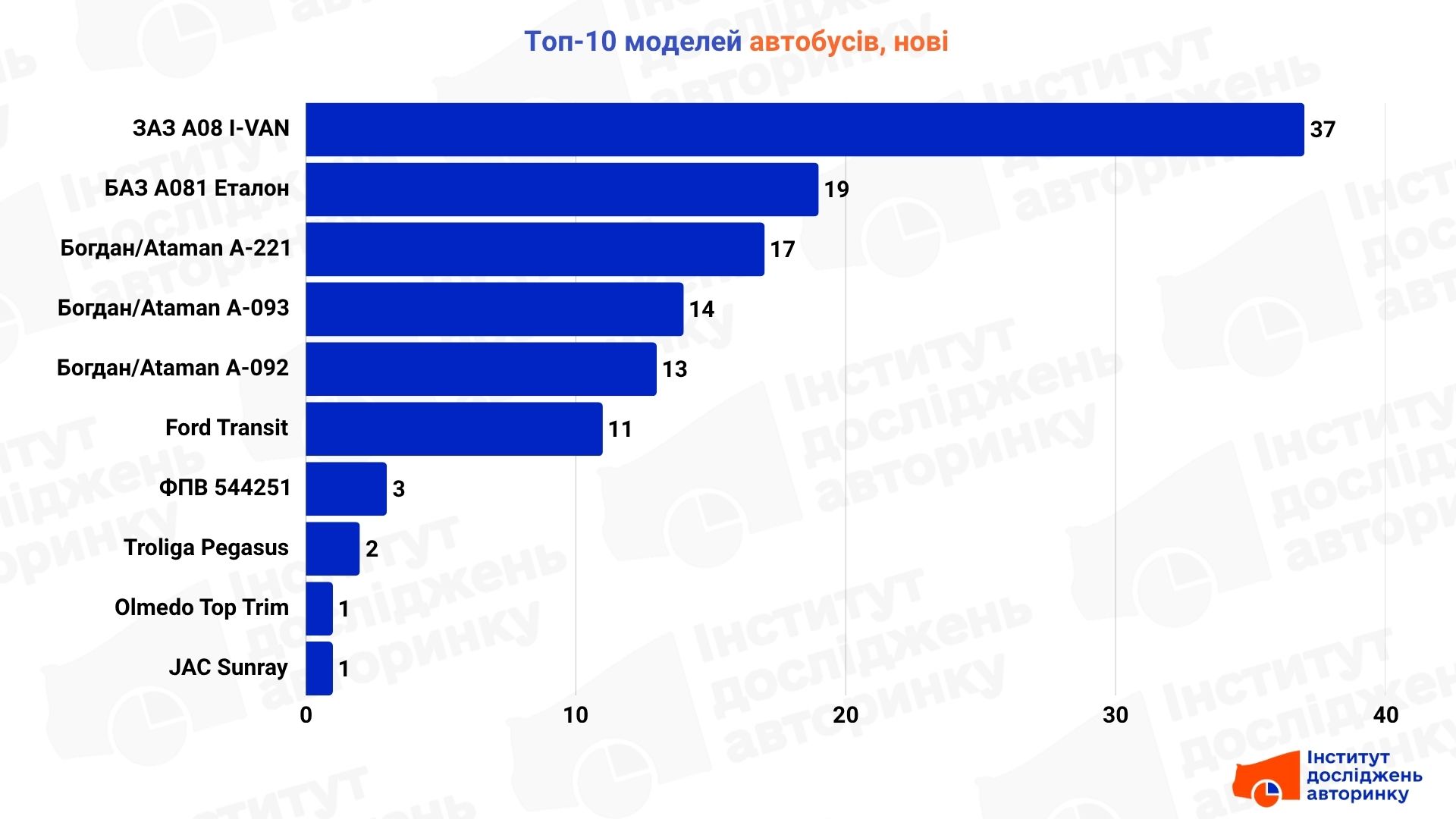 The market for new buses is almost completely monopolized by domestic manufacturers, which is natural for this segment. The clear leaders are ZAZ A08 I-VAN, which has become the new favorite of carriers, and its main competitors are BAZ A081 Etalon and a whole range of Bogdan/Ataman models ( A-221, A-093, A-092 ). Such a high concentration of Ukrainian brands is explained by their compliance with specific tender requirements and conditions for participation in fleet renewal programs, where preference is given to a local manufacturer.