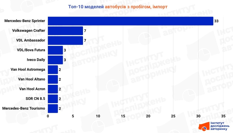 Experts from the Institute for Automotive Market Research analyzed vehicle registration statistics in Ukraine and identified the most popular models in three bus segments: used import, domestic resale, and new purchase.