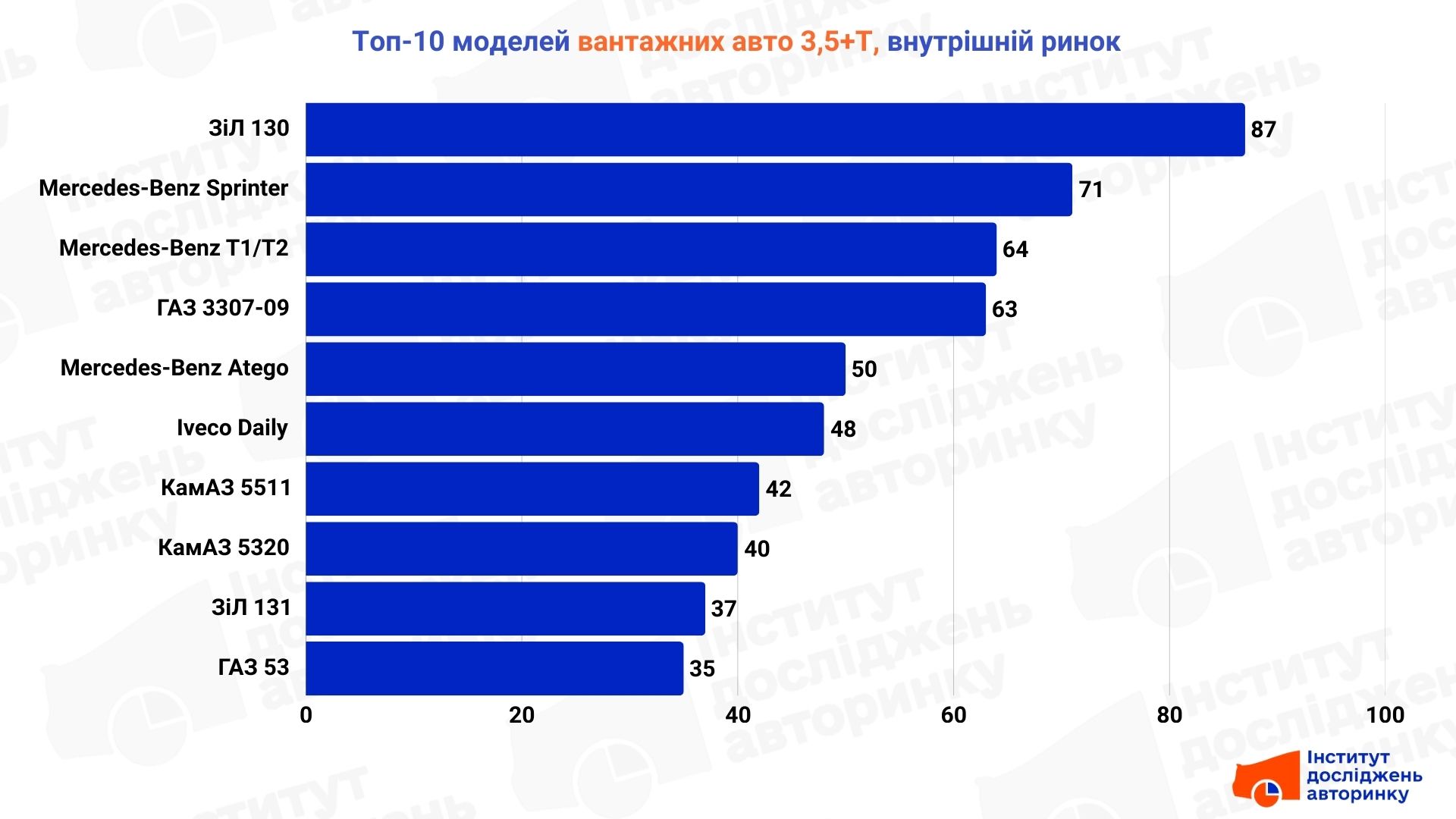 The market for new trucks (with a gross weight of over 3.5 tons) looks the most encrypted. If you look at the top 10 models, half of them resemble complex Wi-Fi passwords, not car names. This is explained simply: the lionʼs share of new equipment is already registered as a product of Ukrainian production. Imported chassis (MAN, Ford, Iveco, etc.) are retrofitted with a body, a crane-manipulator or a van at domestic enterprises ("Spets-Kom-Servis", InterCargoTruck, Reform), receiving a new name and Ukrainian VIN code.