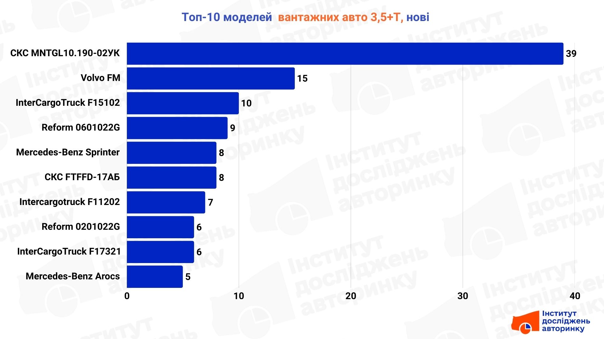 The first place is taken by a large margin by the model with the complex name SKS MNTGL10.190-02UK. Behind this set of letters is the popular German MAN TGL chassis, which was retrofitted by the company "Spets-Kom-Service" (Polycar). In fact, the leadership of this "Ukrainian MAN" confirms the trend that we saw in the import of used cars — business is now massively buying medium-tonnage equipment for distribution, but in the case of new cars it prefers ready-made "turnkey" solutions from a local manufacturer.