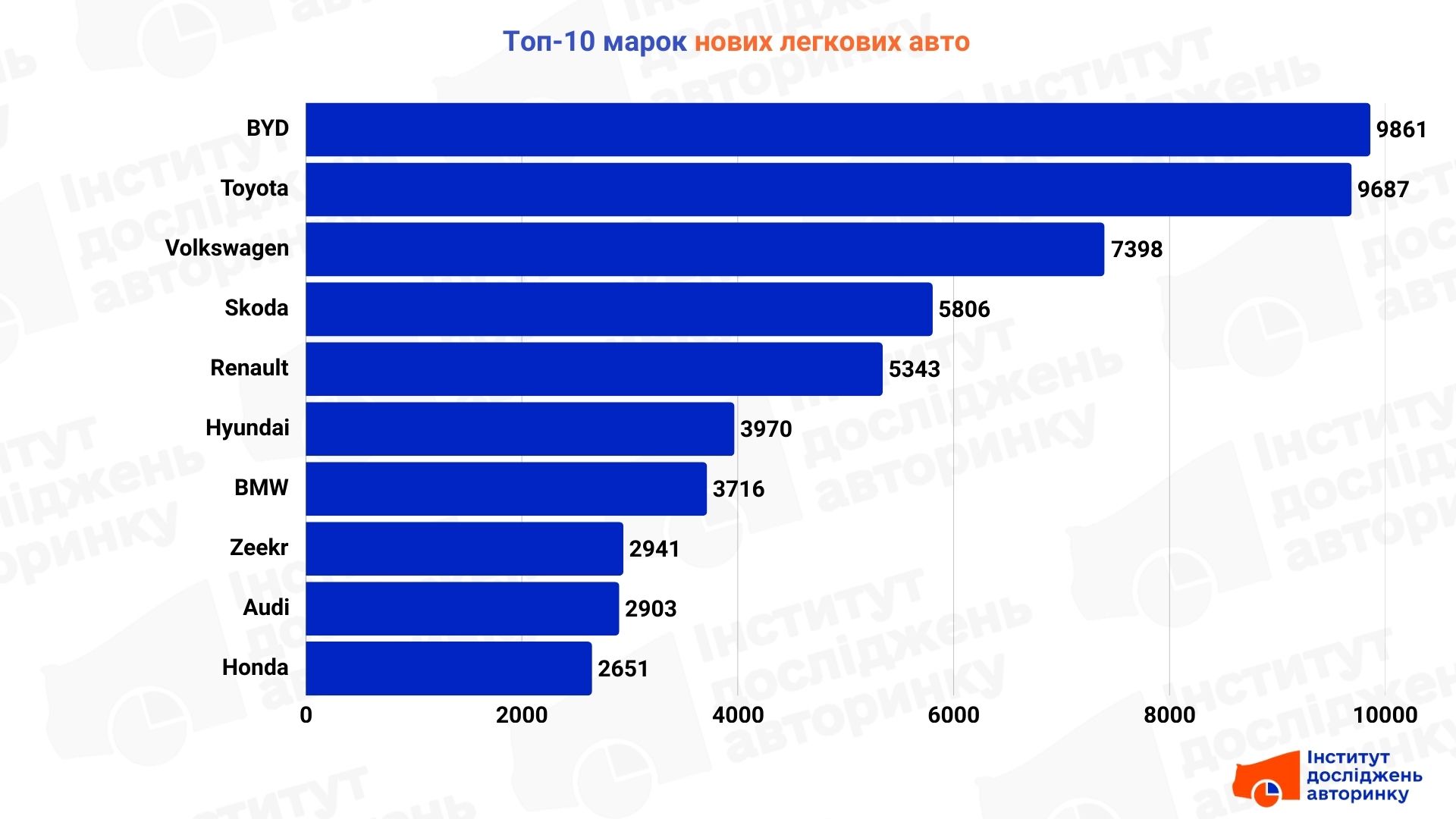According to the results of 2025, the leader among manufacturers of new cars on the Ukrainian car market was the Chinese BYD. And here it is not worth mentioning the electric car hype, because this brand confidently increased volumes throughout the year, and was in the lead for more than one month in a row. The arithmetic difference from Toyota is small, literally two hundred cars. However, it is of great importance that it still took first place, without an official representative office, service centers, guaranteed availability of spare parts, service and software support specifically for Ukraine.