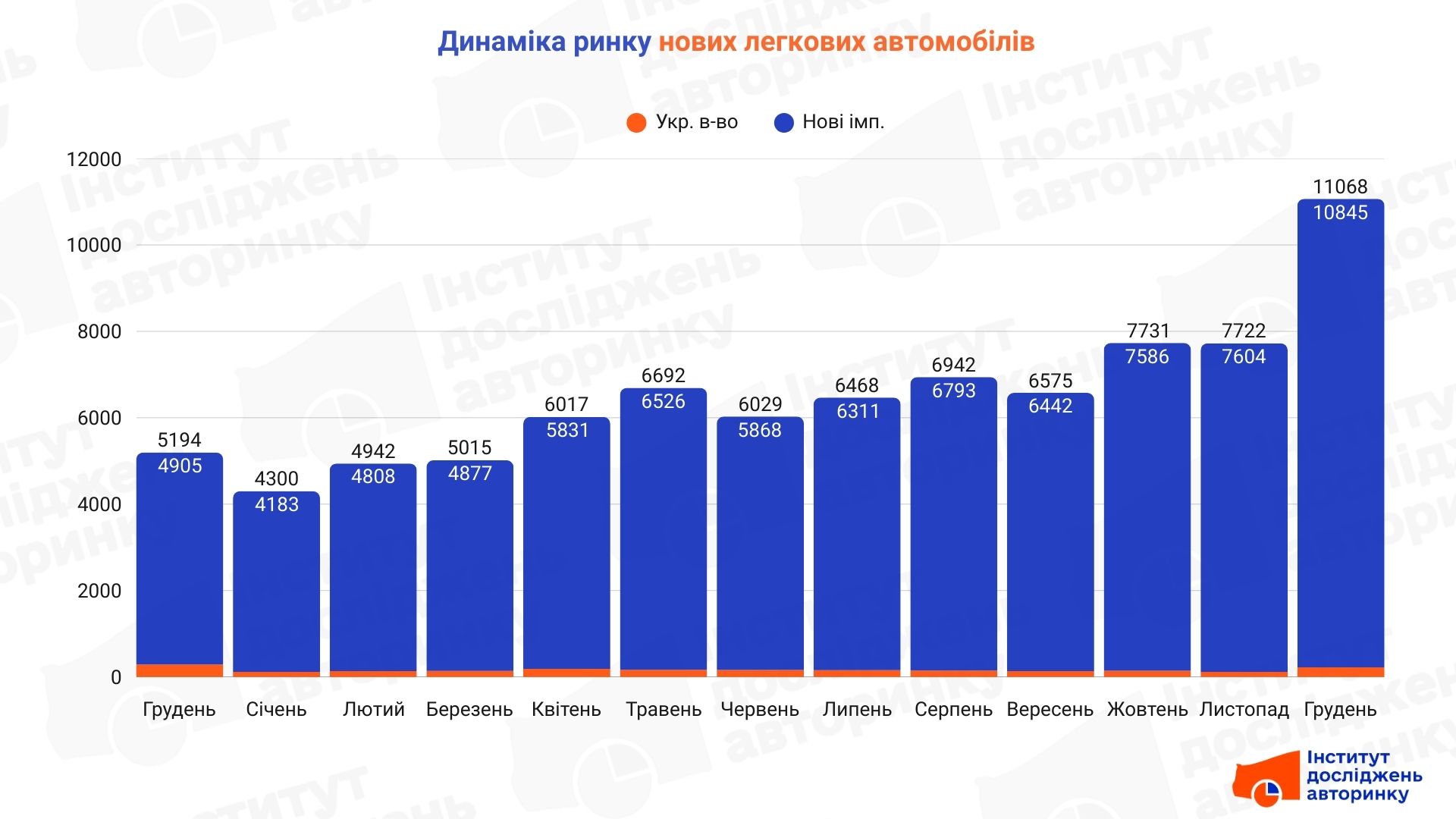 During December 2025, Ukrainians and local enterprises purchased 11.1 thousand new passenger cars. In annual comparison with December 2024, we have an increase in volumes of 113.1%, when comparing this yearʼs December to November, we get an increase of 43.3%. Such a noticeable jump was caused by a wave of purchases of electric cars — in order to make it to the end of 2025 and not buy the same thing, but with VAT, which increases the price of a car by at least 20%.
