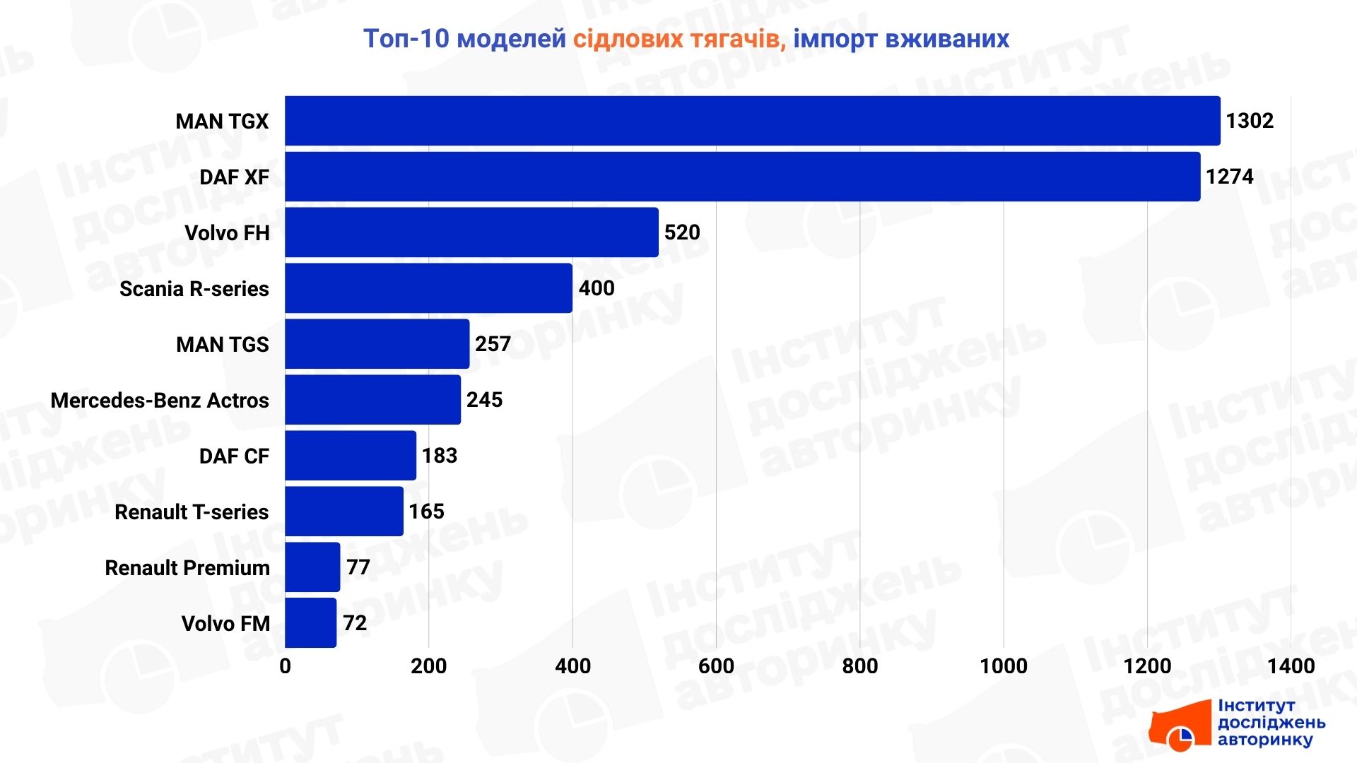 In the segment of "drive-in" from Europe, the main struggle unfolded between MAN TGX and DAF XF. These two models account for more than 50% of all imports of used equipment.