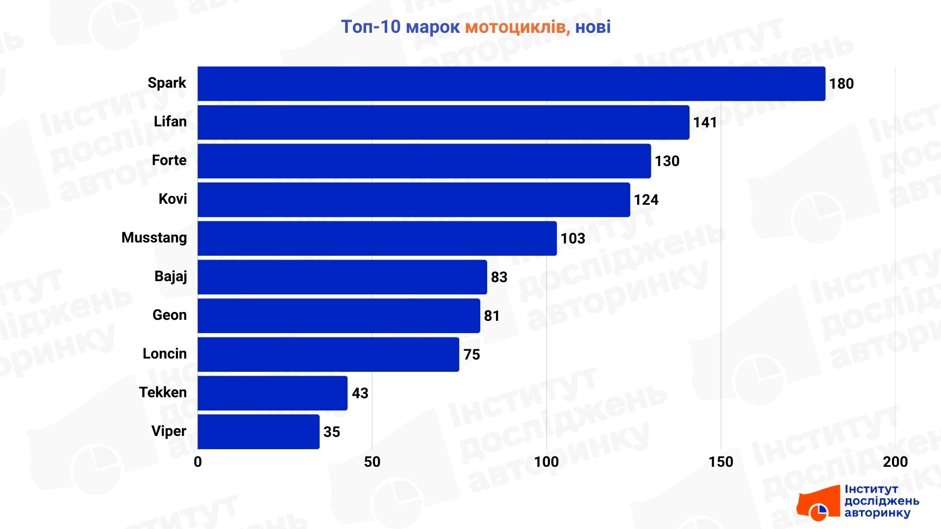 З іншого боку, ми спостерігаємо активне формування «вторинки» китайських брендів. Марки Lifan, Musstang та Spark дедалі частіше перепродаються вже всередині країни, що свідчить про насичення ринку бюджетними рішеннями. Також у топі тримаються бренди Kovi та Geon, що спеціалізуються на ендуро-техніці — такий транспорт обирають для складних дорожніх умов. Присутність BMW у десятці лідерів відображає активність у преміум-сегменті, де покупці готуються до туристичного сезону заздалегідь.
