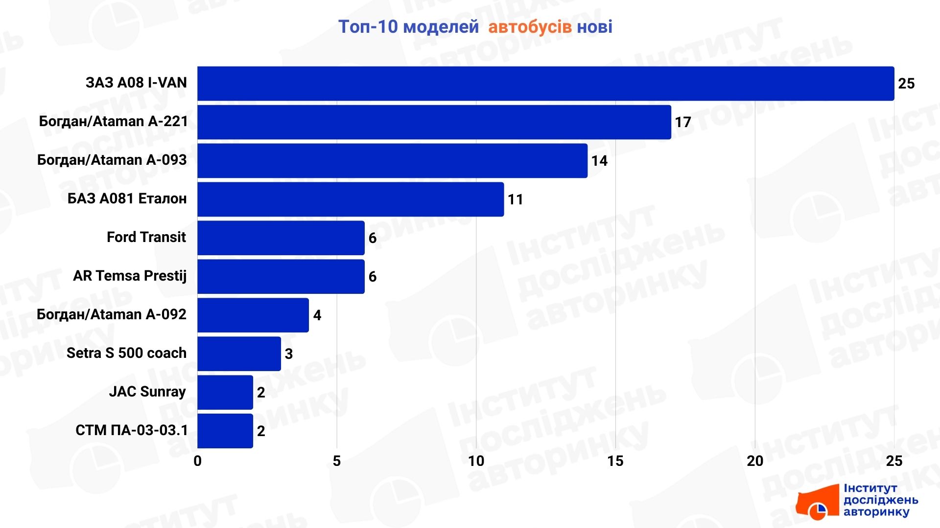 Ринок нових автобусів тримається на українському виробництві. Лідером став ЗАЗ A08 I-VAN, який активно конкурує з різними версіями Богдан/Ataman (А-221, А-093, А-092) та БАЗ А081 Еталон.