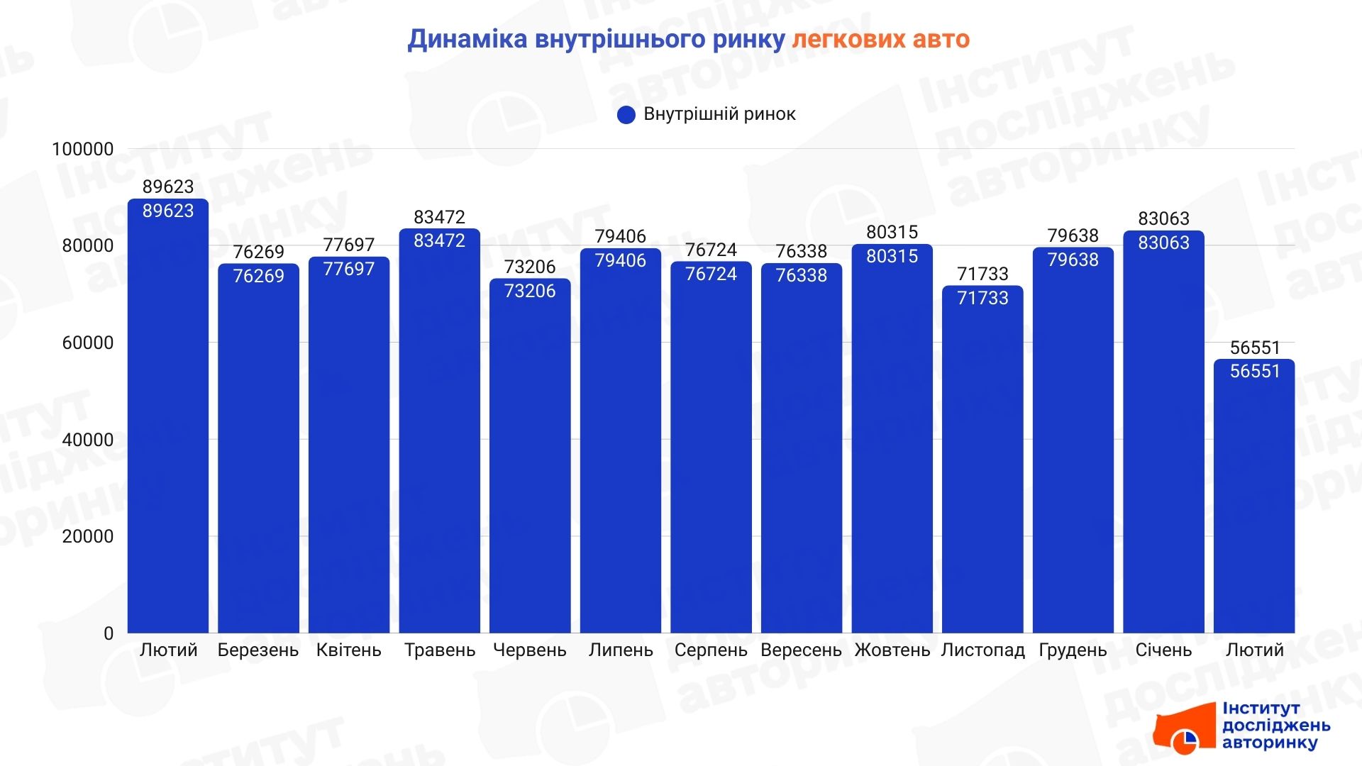 У лютому 2026 року внутрішній ринок вживаних легкових автомобілів продемонстрував очікуване зниження активності після аномальних сплесків попередніх періодів. Протягом місяця було зафіксовано 56 551 угоду купівлі-продажу, що свідчить про суттєву негативну динаміку. Порівняно з січнем обсяг перепродажів скоротився на 31,9%, а відносно лютого минулого року падіння склало 36,9%.