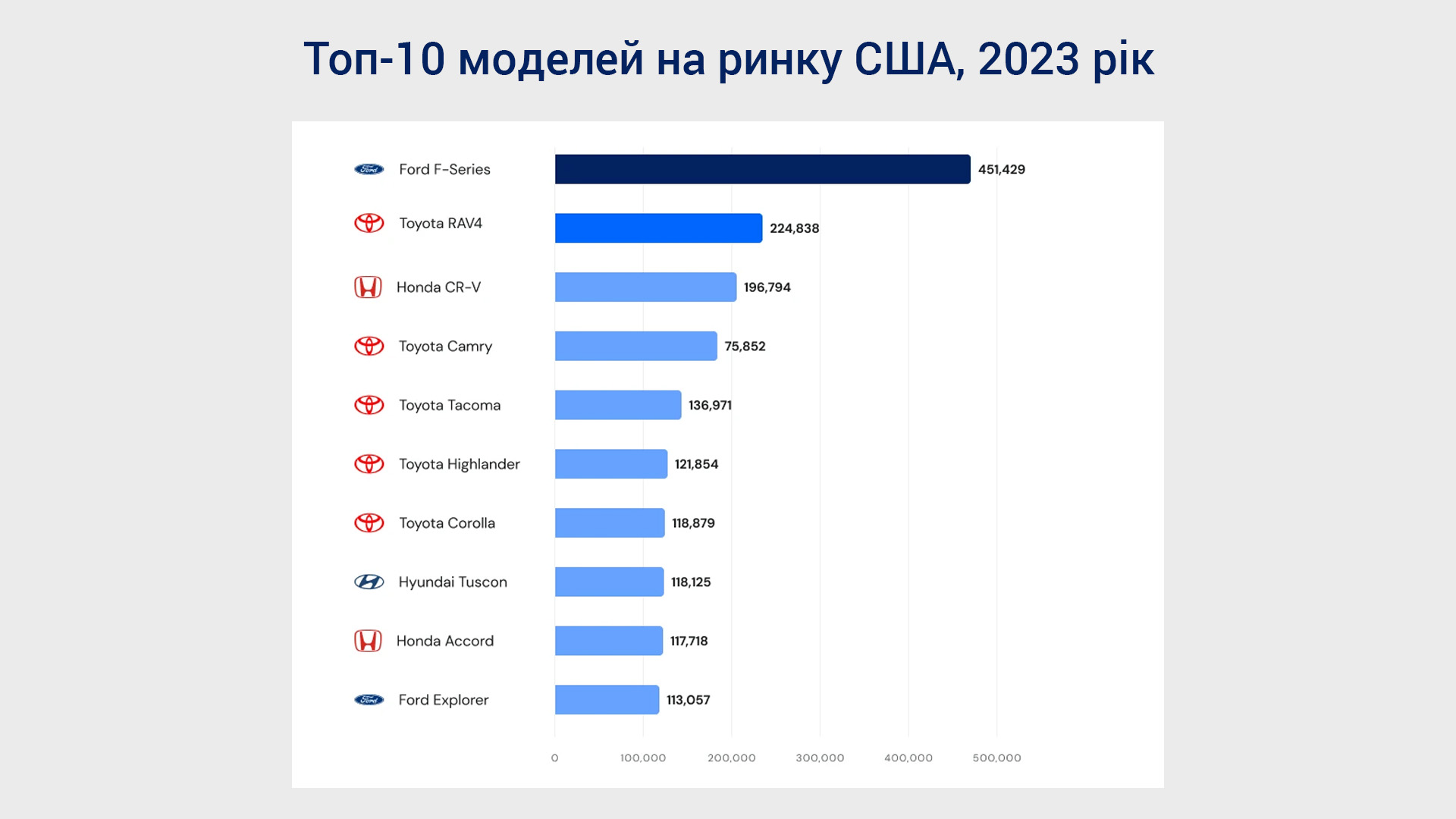 Японські виробники запропонували те, що точно не мало б спрацювати на американському ринку – компактні, економні, недорогі і надійні автомобілі. Але – спрацювало, і працює донині, бо у кожному щомісячному чи річному зрізі бачимо, скільки японських марок виходять в Топ продажів. До речі, список автовиробників США, які в різний час припинили своє існування займає 19 сторінок формату А4 та містить понад 700 марок.
