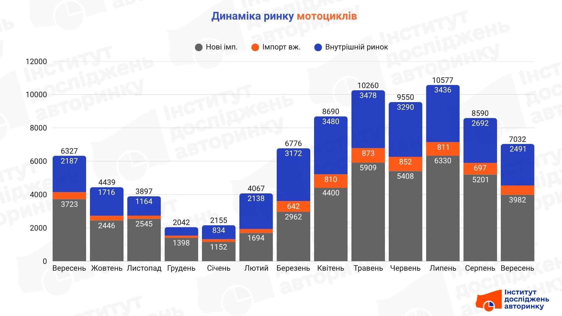 Сегмент мотоциклів — найбільш залежний від сезонності, серед транспортних засобів, призначених для перевезень пасажирів чи вантажів. На діаграмі видно, як активізується ринок влітку, під час високого мотосезону, та наскільки знижуються обсяги продажів у міжсезоння.