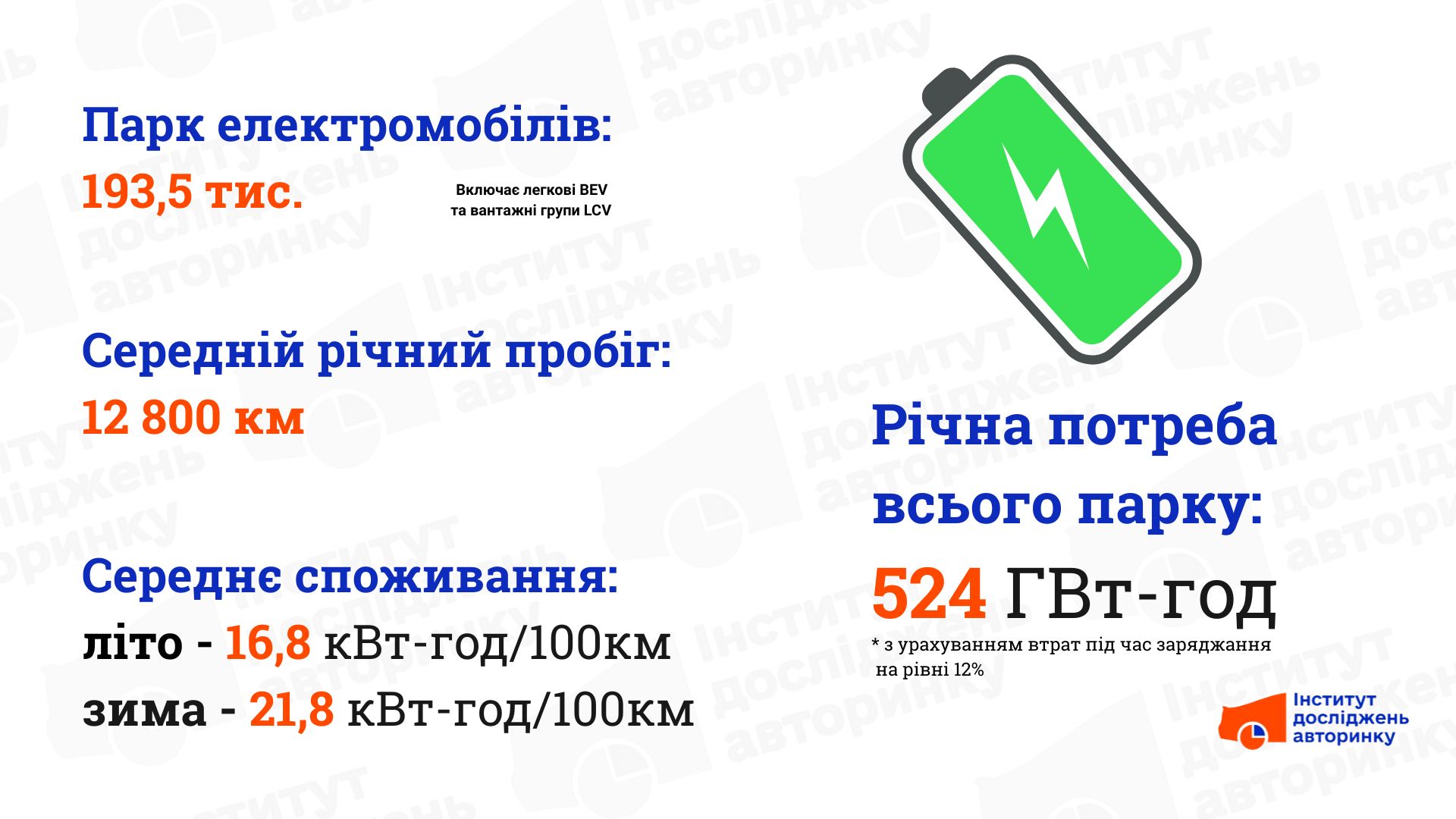 Але всі ці розмови без цифр мало що варті. Тому фахівці Інституту досліджень авторинку спільно з аналітичним центром DiXi Group вирішили дослідити питання ґрунтовно: чи вистачить електрики всім попри електромобілі, і чи є межа, за якої наступний автомобіль у парку може спричинити перевантаження системи.