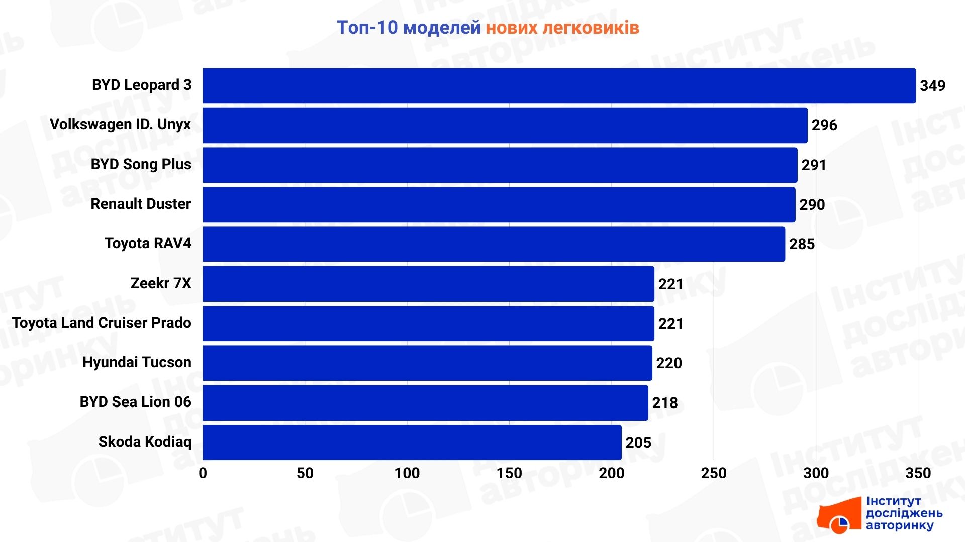 Загалом у десятці бачимо цікавий мікс прагматизму та футуризму: поруч із новітніми Zeekr 7X та BYD Sea Lion 06 свої місця зберігають класичні Toyota Land Cruiser Prado, Hyundai Tucson та Skoda Kodiaq.