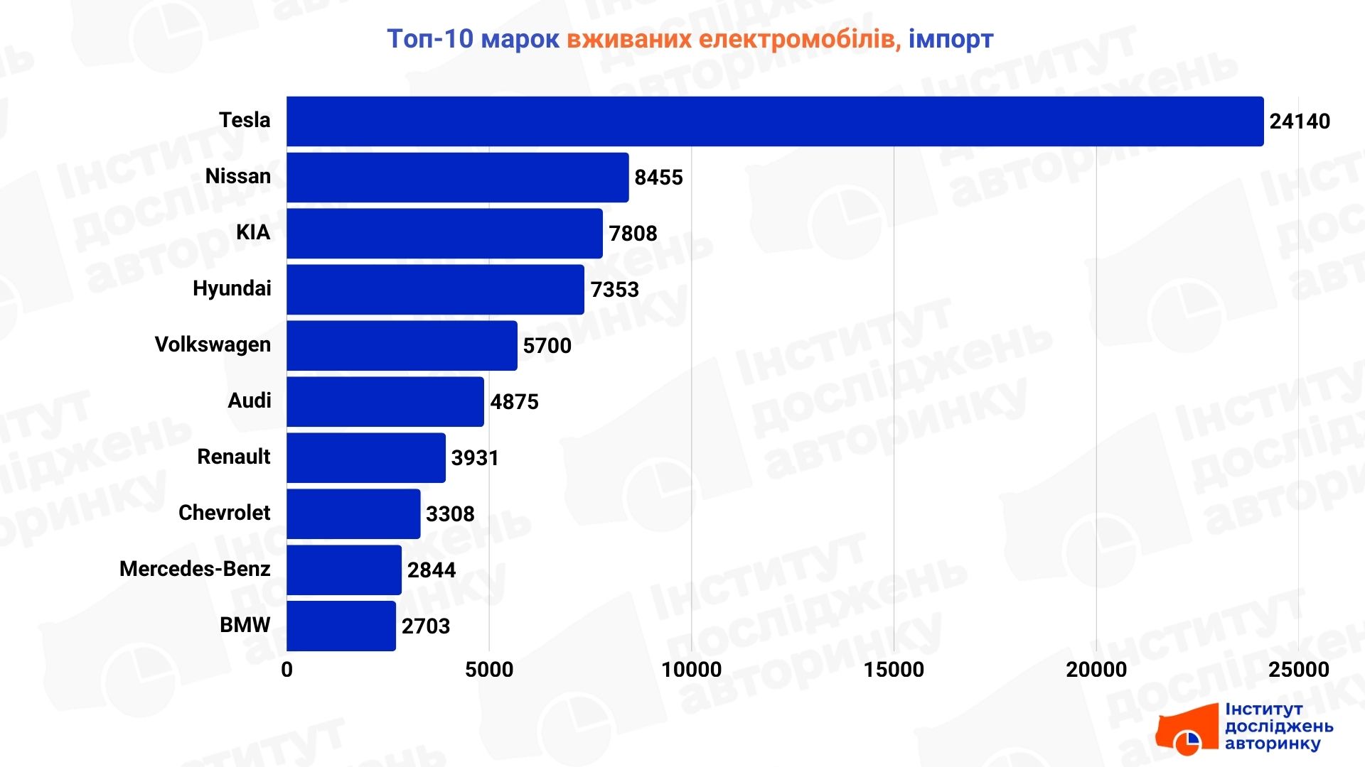 Цікавим є посилення позицій корейських брендів KIA та Hyundai, які практично йдуть поряд. Їх обирають за зрозумілий сервіс та вдалі кросовери. Далі йде німецька група — Volkswagen, Audi, Mercedes-Benz та BMW. Якщо «народна марка» VW бере масовістю, то преміальна трійка показує, що українці дедалі частіше готові обирати вживаний електромобіль замість традиційного преміуму з ДВЗ. Також у десятці тримаються Renault, з компактними міськими авто, та Chevrolet, що пропонує практичні рішення з американського ринку.