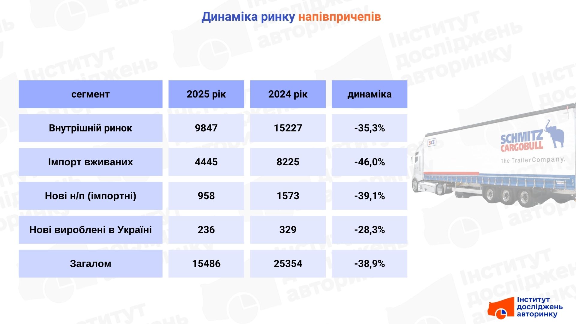 «Ринок причепів у 2025 році нарешті позбувся гарячкового попиту. Ми бачимо, що кількість нових причепів українського виробництва впала значно менше (-28,3%), ніж імпорт нових (-39,1%). Це важливий сигнал: українські заводи навчилися робити продукт, який бізнес готовий купувати навіть у складні часи.Загальне просідання ринку — це не ознака кризи, а етап стабілізації. Парки укомплектовані, логістичні ланцюжки вибудувані. Тепер ринок переходить до планового оновлення, де головними факторами стають не наявність техніки "на вчора", а її паливна ефективність, вага та вартість обслуговування».